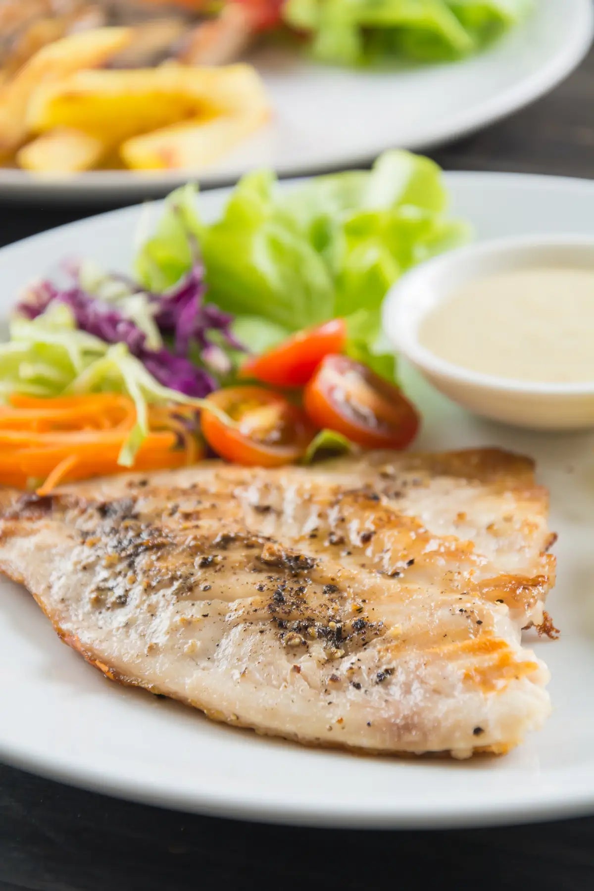 3. Zum Servieren den Grill anheizen und die Lachsfilets mit der Hautseite nach unten auf den Grill legen. 8 bis 12 Minuten lang rösten, dabei häufig mit Marinade begießen, dann die Filets einmal wenden und etwa eine weitere Minute braten, bis das Fleisch undurchsichtig ist und sich mit einer Gabel leicht lösen lässt.