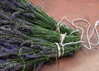 Dekorative und abrasive Peelingwirkung in Seife mit Lavendelöl. Trockene Lavendelblüten von unseren Bauernhöfen.