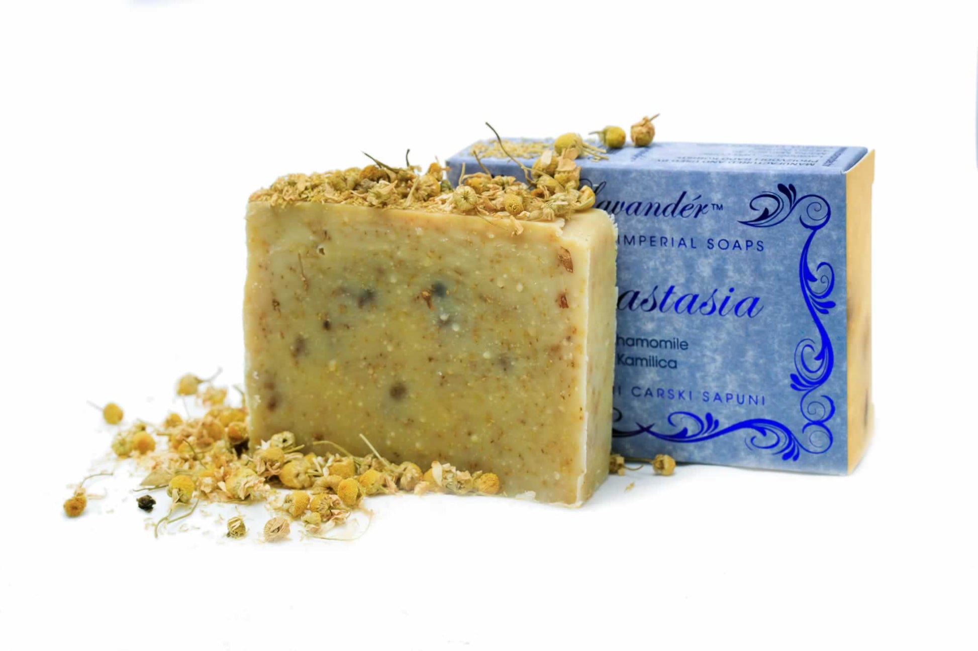 - Kamillenseife für das Gesicht spendet Feuchtigkeit und trocknet die Haut aufgrund des hohen Gehalts an natürlichem Glycerin nicht aus