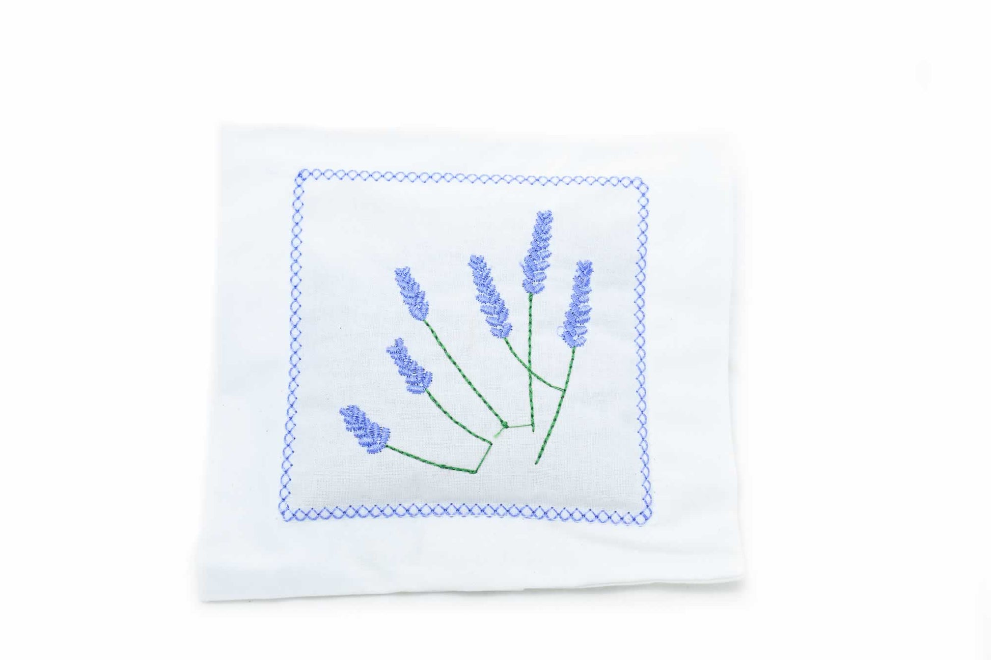 Handbesticktes Lavendelkissen aus feinem weißen Baumwollleinen und handbestickt mit einer Darstellung von Lavendelblüten. Für zeitlose Frische kann es geleert und mit frischen Blumen wieder aufgefüllt werden. Verwenden Sie sie als Geschenk, in Schubladen, Kleiderschränken, unter Kissen, überall dort, wo Sie einen Hauch von poliertem Stil und Eleganz wünschen. Unsere bestickten Lavendelkissen sind waschbar und wiederverwendbar. Die Tasche des Lavendelkissens ist mit einem Klettverschluss verschlossen, was das Entfernen der Lavendelblüte und das Einsetzen einer neuen erleichtert. Diese einzigartigen Lavendelkissen haben einen zeitlosen Wert und passen problemlos in eine Vielzahl von Anwendungen.