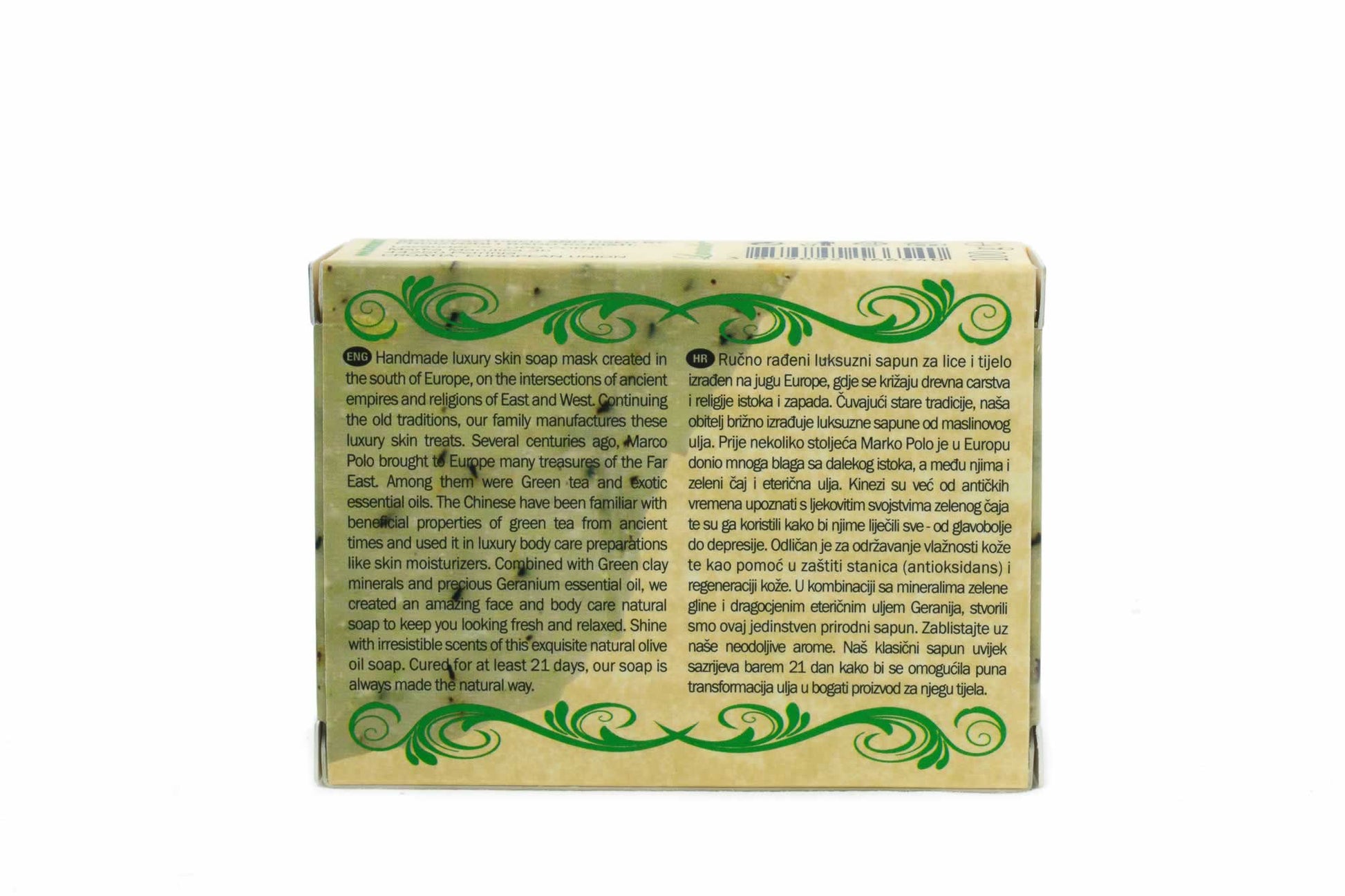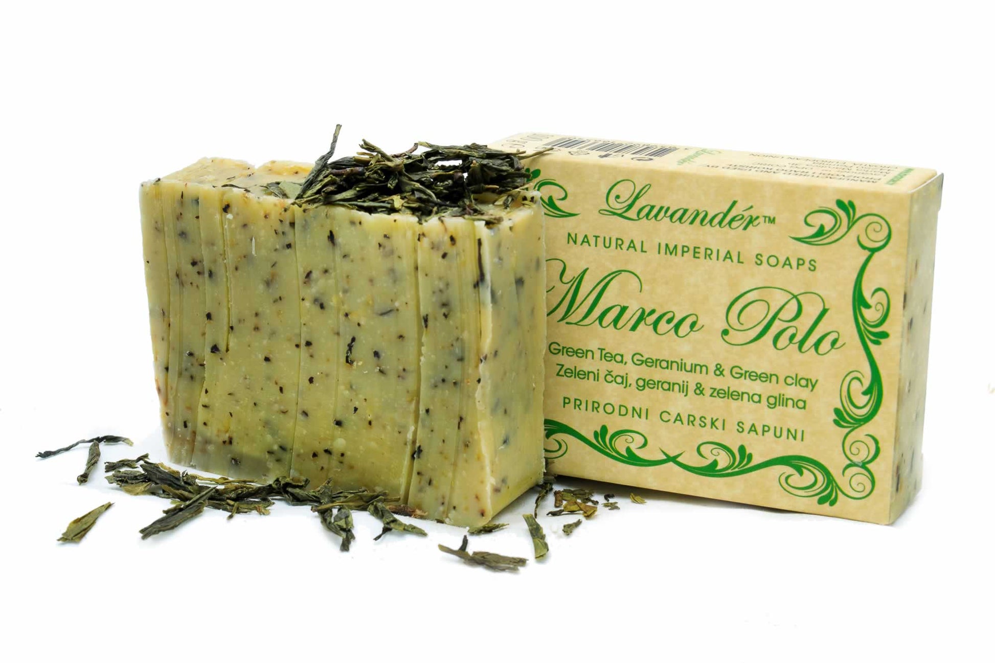 Handgefertigte Luxusseife für Gesicht und Körper, hergestellt im Süden Europas, wo sich die alten Reiche und Religionen des Ostens und des Westens kreuzen. Unter Wahrung alter Traditionen stellt unsere Familie sorgfältig luxuriöse Olivenölseifen her. Vor mehreren Jahrhunderten brachte Marco Polo viele Schätze aus Fernost nach Europa, darunter grünen Tee und ätherische Öle. Die Chinesen sind seit der Antike mit den medizinischen Eigenschaften von grünem Tee vertraut und verwendeten ihn zur Behandlung von Kopfschmerzen bis hin zu Depressionen. Seife mit grüner Tonerde, Tee und Geranie ist eine luxuriöse Kombination für das Wohlbefinden von Haut und Haar.