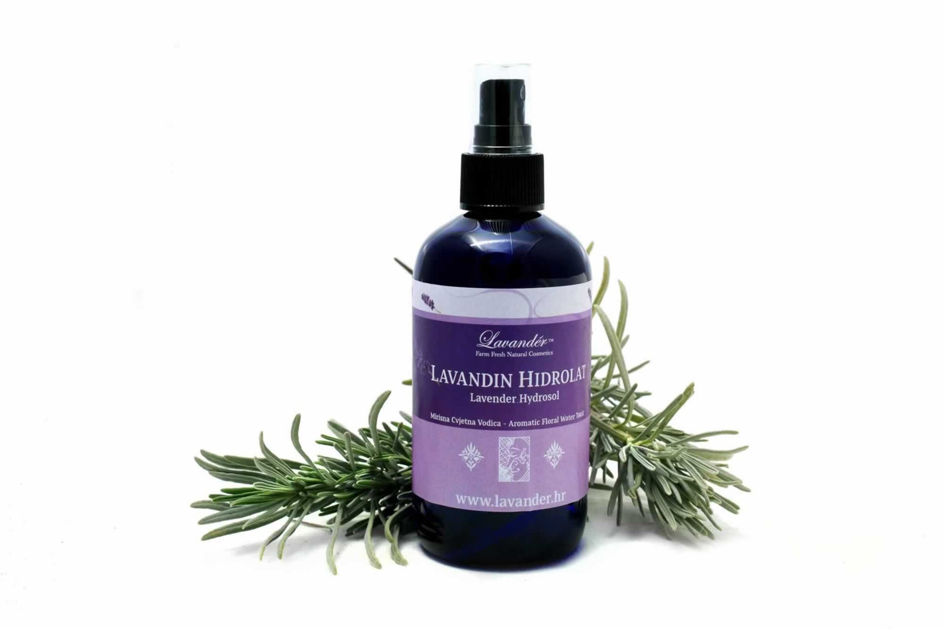 Hidrolat lavandina ili cvjetna vodica lavande (aqua lavandula) potpuno je prirodni proizvod dobiven u procesu destilacije cvjetova i dobivanja ulja lavande. Vrlo je blagotvoran za njegu kože zbog uravnotežene pH vrijednosti. Blag i komplementaran sa eteričnim uljem lavande, može djelovati regenerativno, pročišćavajuće i rashlađujuće. Probajte ga kao dopunsko sredstvo za njegu osjetljive kože, kao i kod akni te iritacija nježne dječje kože. Hidrolat lavande odličan je kao odstranjivač šminke ili za nakon brijanja i depilacije. Kod uporaba za uklanjanje šminke nema potrebe za kasnijim nanošenjem tonika jer hidrolat ostavlja kožu hidratiziranom. Raspršite po jastucima ili posteljini za ugodan osvježavajući miris i lakši san.